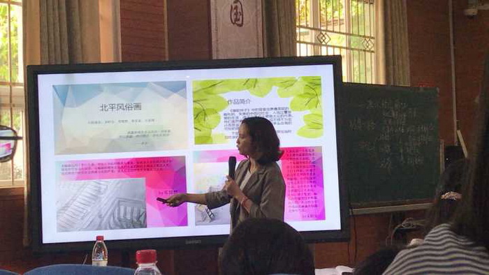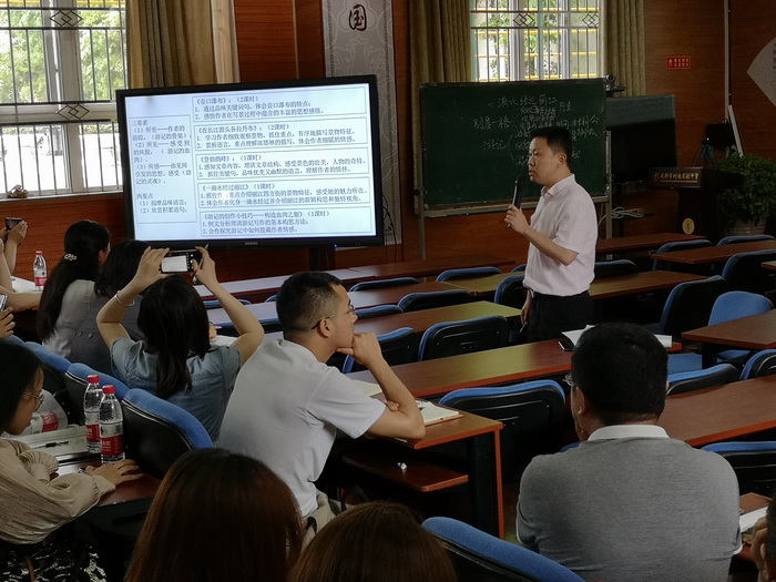 第一节课是崔兆侠老师的《一滴水经过丽江》的语文教研课,崔老师精致巧妙的设计,让学生们从游踪、风貌、游感三方面来把握这篇游记课文,教学过程中注重学生的真实阅读、品味赏析、深度思考,泡桐树中学的老师们都感叹崔老师扎实的语文功底和别具一格的教学设计。