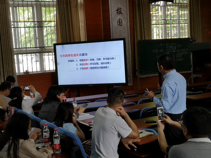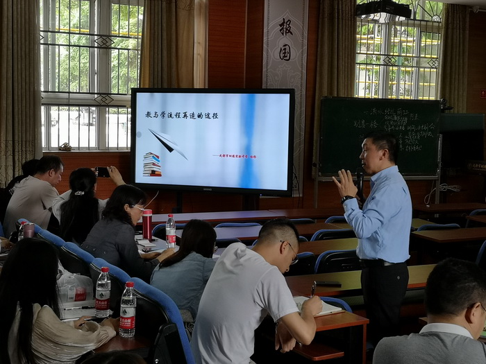第三节课是树德实验中学杨彤校长的《教与学流程再造的途径》的讲说,杨校长基于目前社会信息化的发展和教育变革的要求,更加关注“未来学校”的发展,注重学生成长的过程,这和泡桐树中学的教学理念是一致的,在座老师们听了之后都是深有感触。