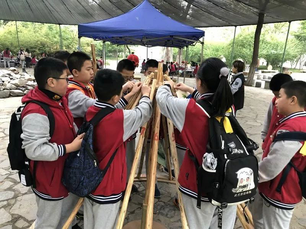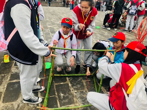 同学们利用材料分组进行炮台的搭建,延续先辈们的智慧结晶,开拓思维,培养同学们团队协作的能力。