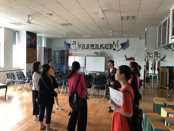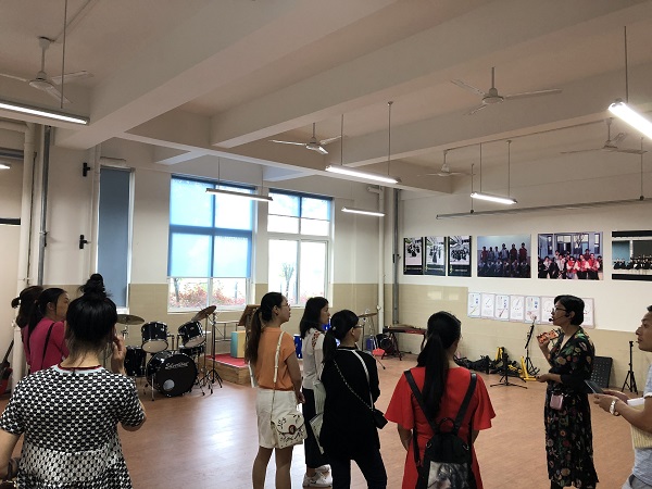 泡桐树中学精心准备了跟岗培训内容,让参培教师收获满满。办公室肖妍老师带领参培教师们参观校园,并热情的进行了讲解。肖老师给大家详细介绍了学校的办学特色,学校的特色课程的开展,以及研学课程的实施和成果,让参培教师们对这所“没有班主任,实施选课走班”的学校有了比较全面的了解。