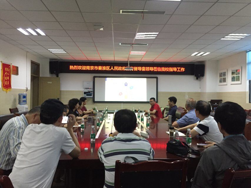 2019年6月25日,南京市秦淮区人民政府教育督导室于琳主任一行14人,在教育局督导室副主任谭晓明、责任督学钟家强陪同下深入泡桐树中学对学校校园文化、办学特色、督导工作创新实践的经验、信息化工作、期末复习计划等进行专项督导检查。
