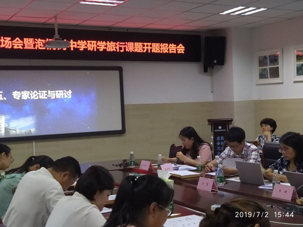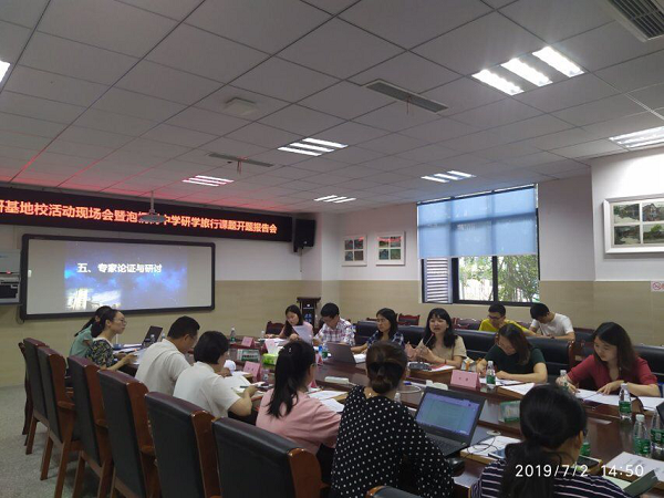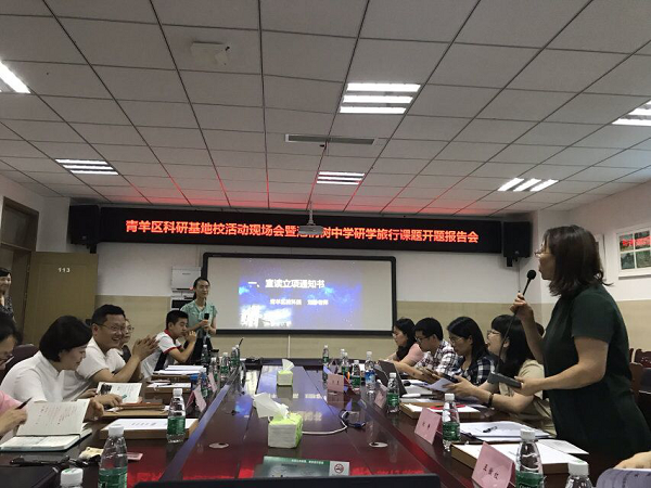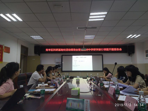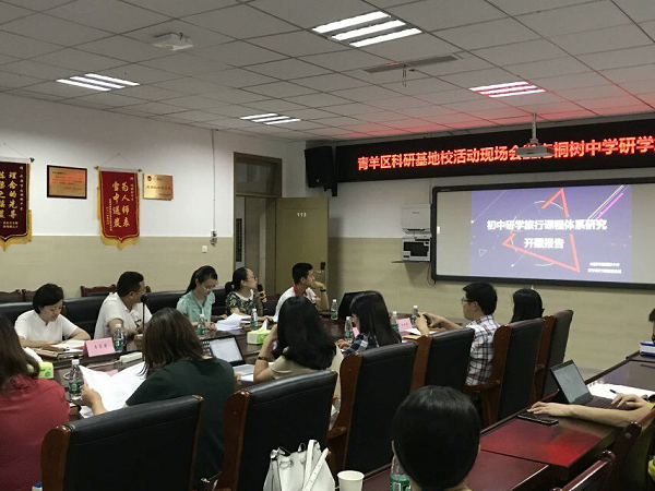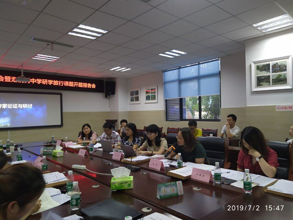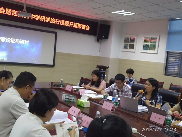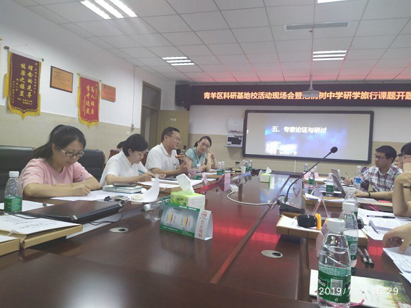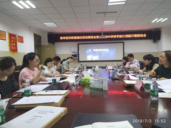 为推动研学旅行课程的开发、实施,2019年7月2日,成都市泡桐树中学举行了“青羊区科研基地校活动现场会暨泡桐树中学研学旅行课题开题报告会”。莅临现场的专家有成都市劳动与综合实践活动教研员肖慧老师、成都市未来学校项目建设教研员王妍老师、青羊区劳动与综合实践活动兼信息技术教研员郭红霞老师、青羊区地理教研员庄永红老师和青羊区教科院刘静老师和王傲红老师。本次会议参与人员还有成都市泡桐树中学杨超校长、欧燕副校长、李霞霏主任、李鹏主任、陈斌副主任及研学旅行课题组全体老师。