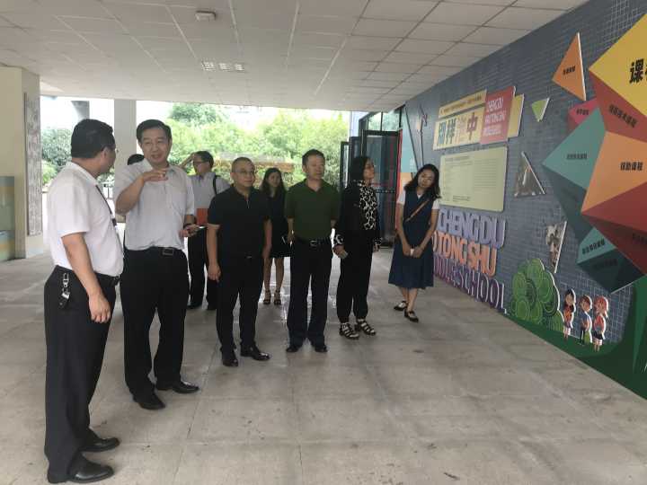 7月4日上午,教育部中外人文交流中心主任杜柯伟、教育部中外人文交流中心机制工作二处处长陈滔伟、机制工作二处项目主管王星、成都市教育局党组成员副局长沈鹏、成都市教育对外交流中心主任李全、青羊区教育局副局长徐琨等领导一行,走进成都市泡桐树泡桐树中学。