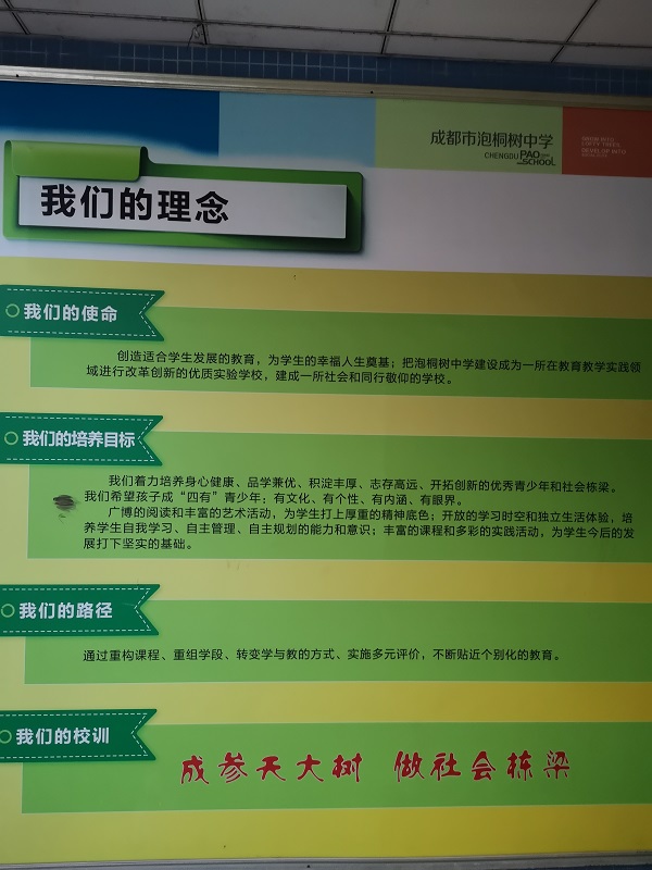 “人文底蕴、科学精神、学会学习、健康生活、责任担当、实践创新”是中国学生发展的六大核心素养,着重以培养“全面发展的人”为核心。成都市泡桐树中学作为成都市教育综合改革试点项目学校,将秉承“聚焦核心素养 提高德育实效”,扎实做好育人教育教学工作,办一所特色鲜明的素质教育学校。