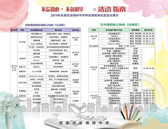 不忘初心,不负桐华—主题期末展演,为期两天的课程展演活动,囊括了我校戏剧,声乐,体育等艺术课程的精彩演出,以及各类社团的展示和活动。