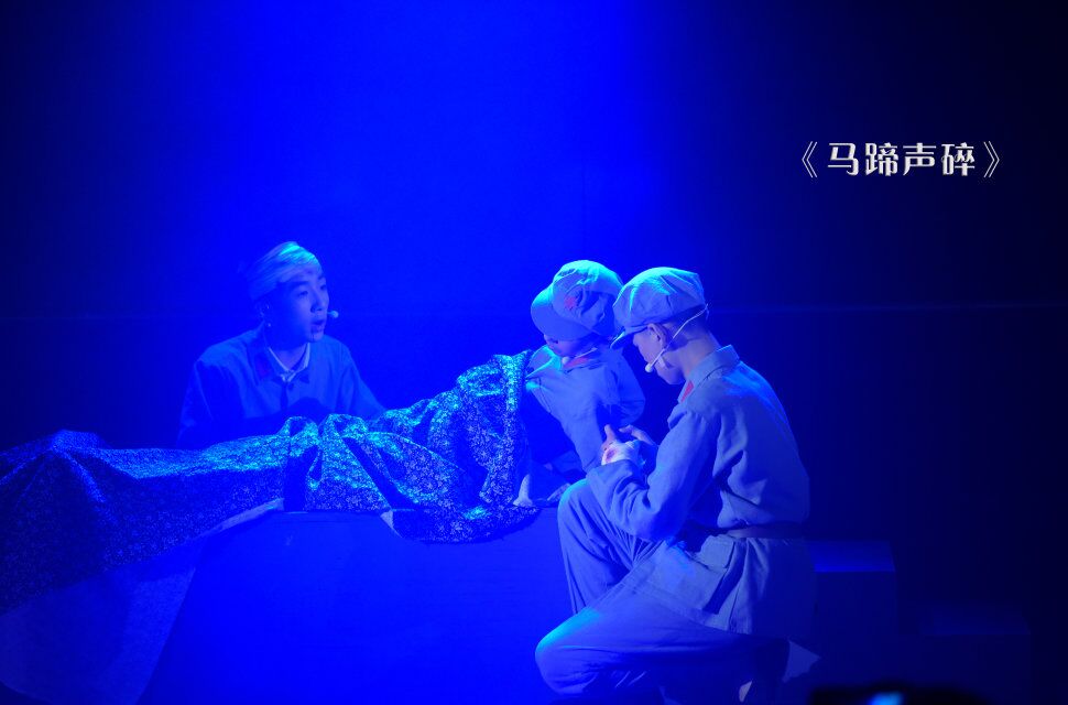 话剧表演《马蹄声碎》。由远及近的马蹄声,同学们的真情演绎,带来了掉队女红军的往昔回忆,激起了弱小身躯内在的生命激情,更唤起了这些处于艰难困苦中的人们无限的革命豪情。