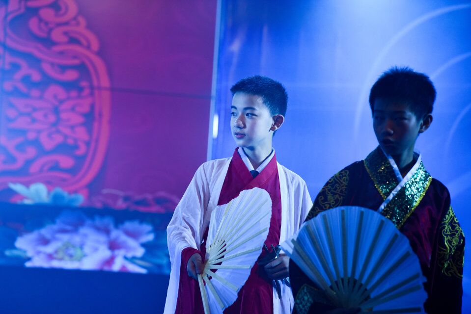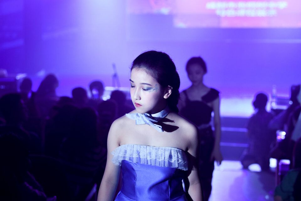 服装走秀表演的小模特们穿着自己设计的服装,从台上到台下,吸引了全场的目光。
