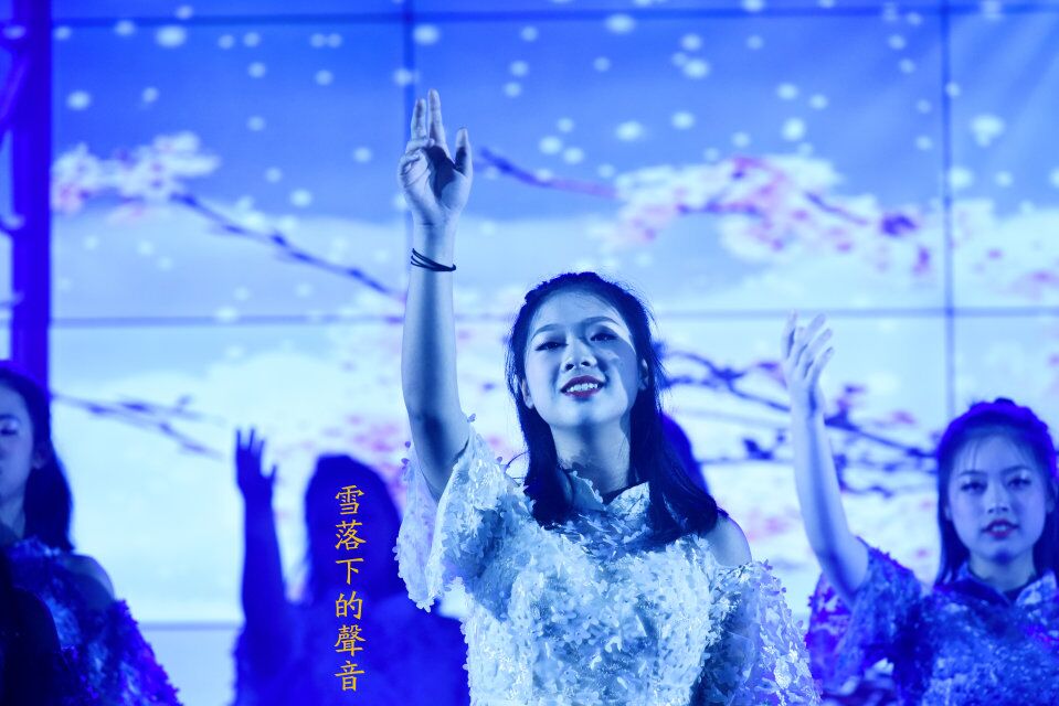 古诗吟诵《把酒当歌;》唯美合唱《雪落下的声音》;活力健美操。同学们的演绎穿越古今,传递传统文化和现代创新融合的课程理念和泡中少年气质。