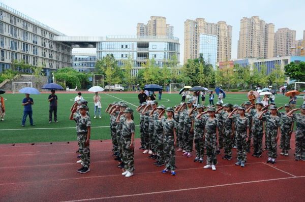 汇报表演在嘹亮的国歌声中拉开了帷幕,12个方队分别进行了队列会操和跑操演练。天空虽然飘起小雨,但2022学部的孩子们并不以此为苦,反而愈加斗志昂扬。五天的军事训练,不仅培养了孩子们良好的行为习惯,磨练了坚强的意志,而且还拉近了师生之间的距离,增强了班级的凝聚力。