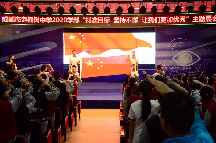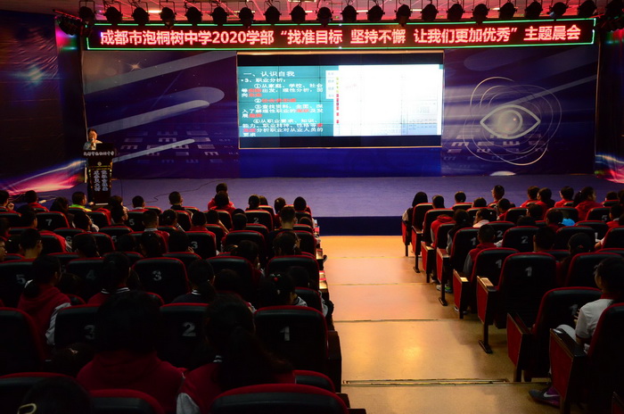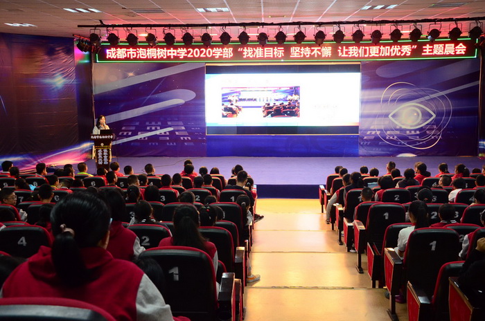 9月16日,成都市泡桐树中学2020学部召开了本学年第二次初三学生大会,大会的主题是“找准目标,坚持不懈,让我们更加优秀”。
