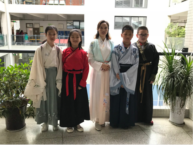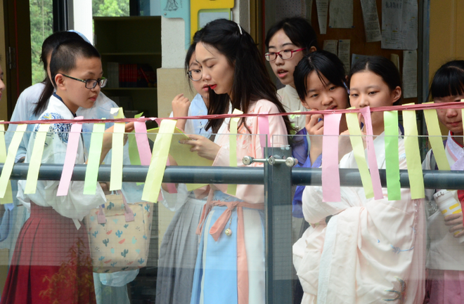细赏一轮秋月,今朝梦回汉唐。9月18日,泡桐树中学迎来了第四届汉文化节。同学们身着不同形制的汉服,迎着濛濛细雨走进学校,惊讶地发现,语文老师们也像古代的“先生”一般穿着汉服准备上课啦!今天的汉文化节活动安排丰富多彩,既让同学们对“汉文化”有了生动形象的认识,也丰富了同学们的学识。
