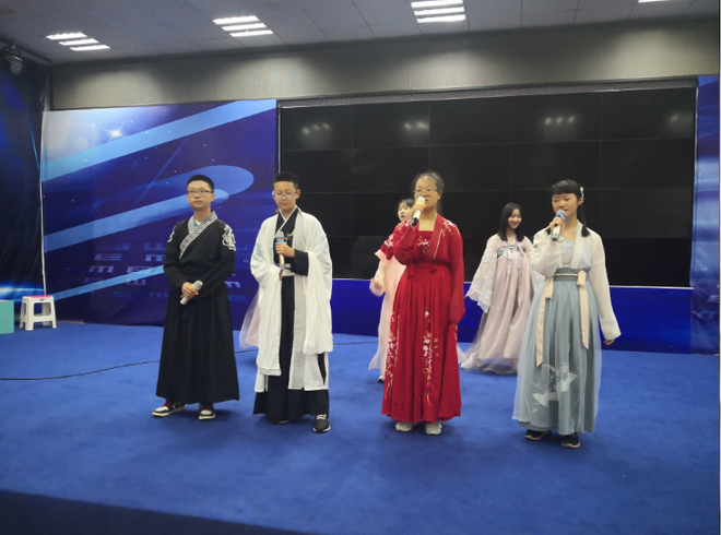 下午的语文辅导时间,所有的同学来到了多功能厅观看与参与汉文化节展演,有《明月几时有》歌舞对唱,有《春江花月夜》吟诵,还有汉服秀。最为激动人心的莫过于“大浪淘沙”诗词知识pk赛了,1、6班的同学一路过关斩将,勇获第一名。最后的环节是“飞花令”, 飞花令原本是古人行酒令时的一个文字游戏,源自古人的诗词之趣,得名于唐代诗人韩翃《寒食》中的名句“春城无处不飞花”。本次比赛为了契合中秋节这一节日,特以“月“字行令,同学们胸有成竹地上场,行令的气氛越来越紧张,坐在场下的同学们都不禁激动地提醒台上的选手,最终9班的周俊含拔得了头筹。