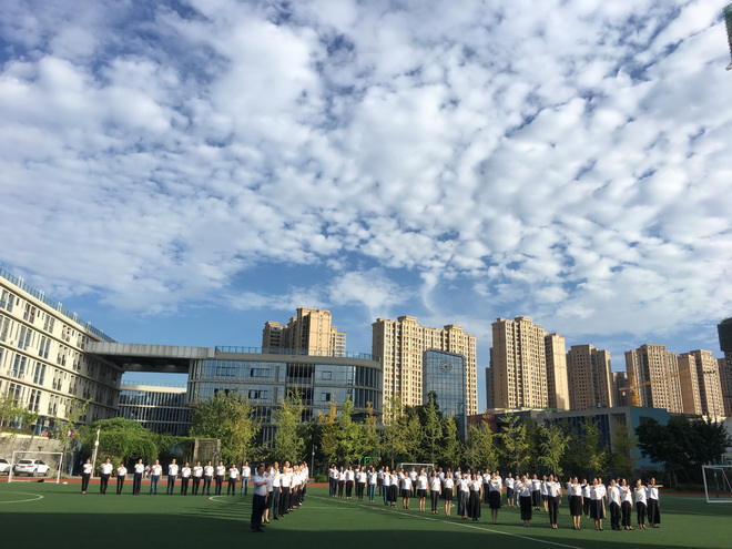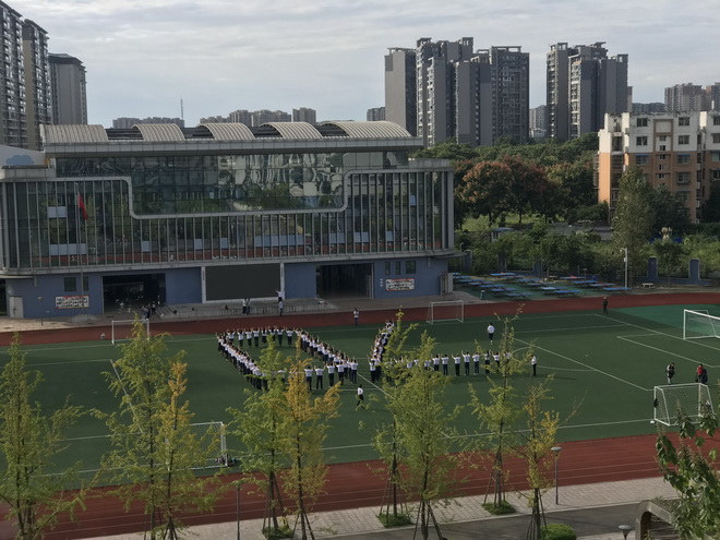 青羊区教育局同仁和区各中小学校长今天齐聚泡桐树中学运动场,为祖国拍摄宣传片。