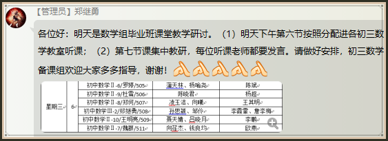 课后,泡中全体数学教师在杨超校长的带领下,进行了真挚而深刻的教学研究。初一和初二听课的数学教师们分别从教学内容,课堂管理等进行了点评,同时提出了很多中肯的意见。所有数学老师在思维的碰撞中又有了新的火花!在“学习型”课堂的探究和建设上,路漫漫其修远兮,吾辈上下而求索!