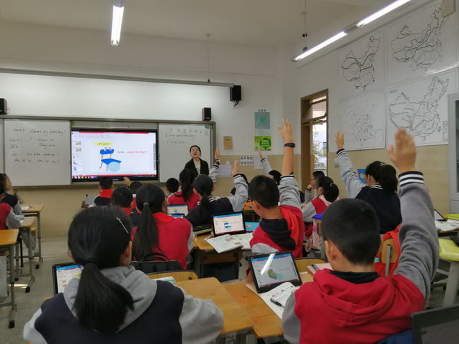 曹莉苑老师的课堂参与面广泛,学生专注程度高。