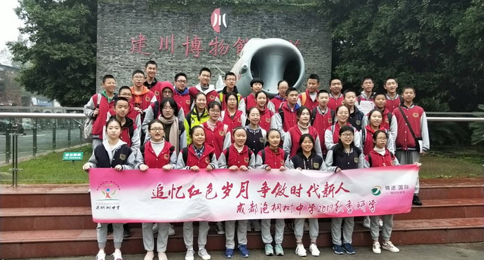 为庆祝新中国成立70周年、纪念五四运动100周年,2019年11月8日,泡桐树中学2020学部的师生,开展“追忆红色岁月,争做时代新人”主题教育活动——建川博物馆红色研学课程,组织其在庄严肃穆的仪式和身临其境的场景中接受“沉浸式”的精神洗礼,引导他们重温革命历史、弘扬五四精神、传承红色基因。