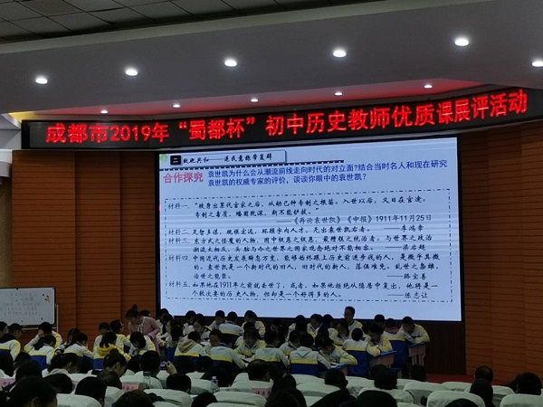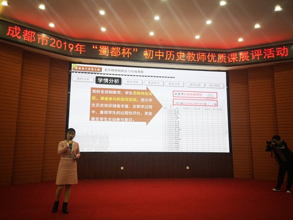 2019年11月12—15日,2019年成都市“蜀都杯”初中历史教师优质课展评活动在金堂中学外国语实验学校举行,我校刘方老师代表青羊区参赛,参赛课题为《北洋政府的统治与军阀割据》,经过第一天说课环节的激烈角逐,刘方老师从26名参赛选手中脱颖而出,顺利进入比赛的第二环节——讲课环节,凭借扎实的史学功底、丰富的教学经验、精巧的教学设计和构思,呈现了一场精彩的课堂,获得成都市一等奖,受到评委和观摩老师们的好评,充分展示了刘方老师个人极强的学科综合素养和泡桐树中学历史教研组的团队力量。