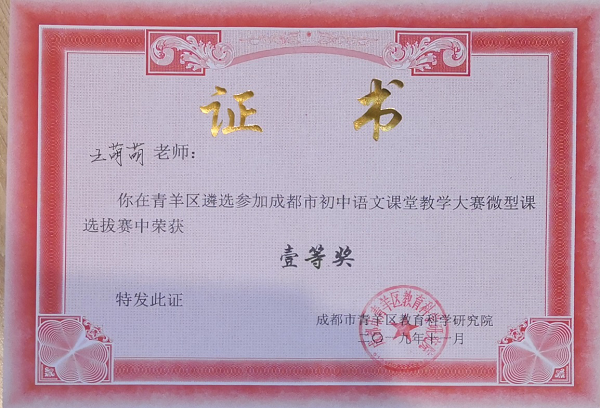 过去的一周对于泡中来说是喜报频传,2019成都市初中英语人教版(新目标)教学展评活动两年一届说课大赛如期举行。参赛老师均是来自成都下属区市县的前几名,此次说课比赛110名选手参赛,前22名晋级展评课总决赛。我校陈斌老师取得第六名的成绩,获评一等奖,成功晋级成都市英语展示课总决赛,预祝陈斌老师在总决赛时,越战越勇,勇夺佳绩。