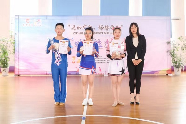 2019年11月15日青羊区举办了“运动成都,锦绣青羊”综合运动会足球啦啦操比赛,成都市泡桐树中学荣获中学组啦啦操规定套路一等奖、自编套路特等奖的好成绩,同时李娇娜老师获得“最佳编排奖”。背后的付出与努力只有老师和同学们才体会得到,正所谓成功源于勤奋和智慧。在泡桐树中学走班制的特殊情况下,大部分参赛运动员很难有共同的训练和排练时间,而啦啦操项目又是一个集体项目,所以运动员必须要有共同的排练时间才能确保队形的完整性和和动作的统一性,所以在援助课程的这个特殊的小学段内,同学们在放学后没有辅导和考试,李老师就抓住了这一共同的时间段,把所有的啦啦操运动员召集在一起进行排练。在前两周利用大课间时间排练的前提下,所有运动员在小学段放学后的时间进行排练,同学们积极参与,团结一致,不怕苦,不怕累,抓住在一起的每分每秒,甚至没有吃饭时间,认真排练,这个好成绩是老师和所有同学们的付出和努力的最好见证。也希望同学们在此过程中能够懂得成功就是需要付出比常人更多的努力。我们会再接再厉,在下一次比赛中取得更优异的成绩。