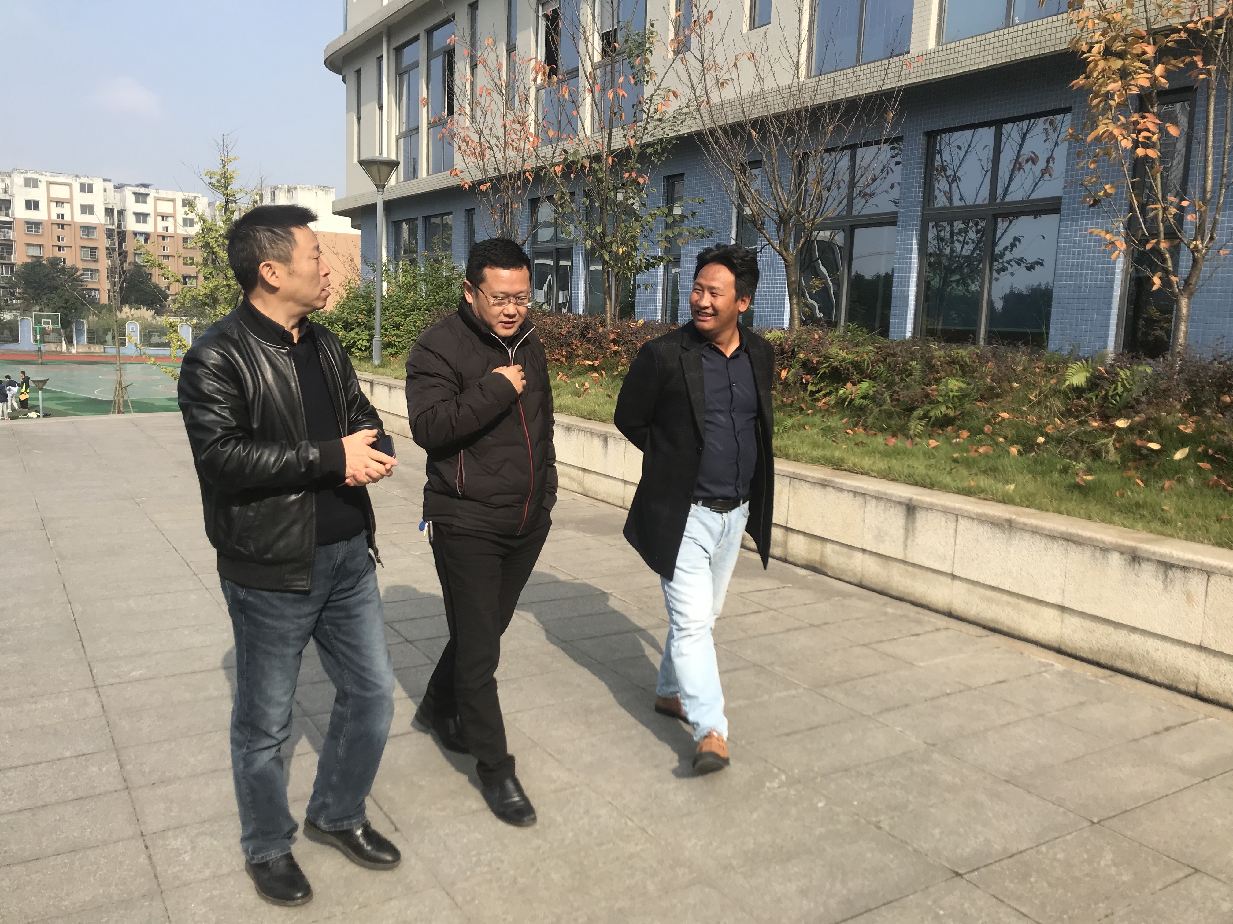 泡桐树中学杨超校长,赵东书记,陪同小昂翁泽仁校长一起参观了泡中校园,杨超校长带领昂校长参观了我校教学区,艺术楼,并介绍了我校校园文化的建设。