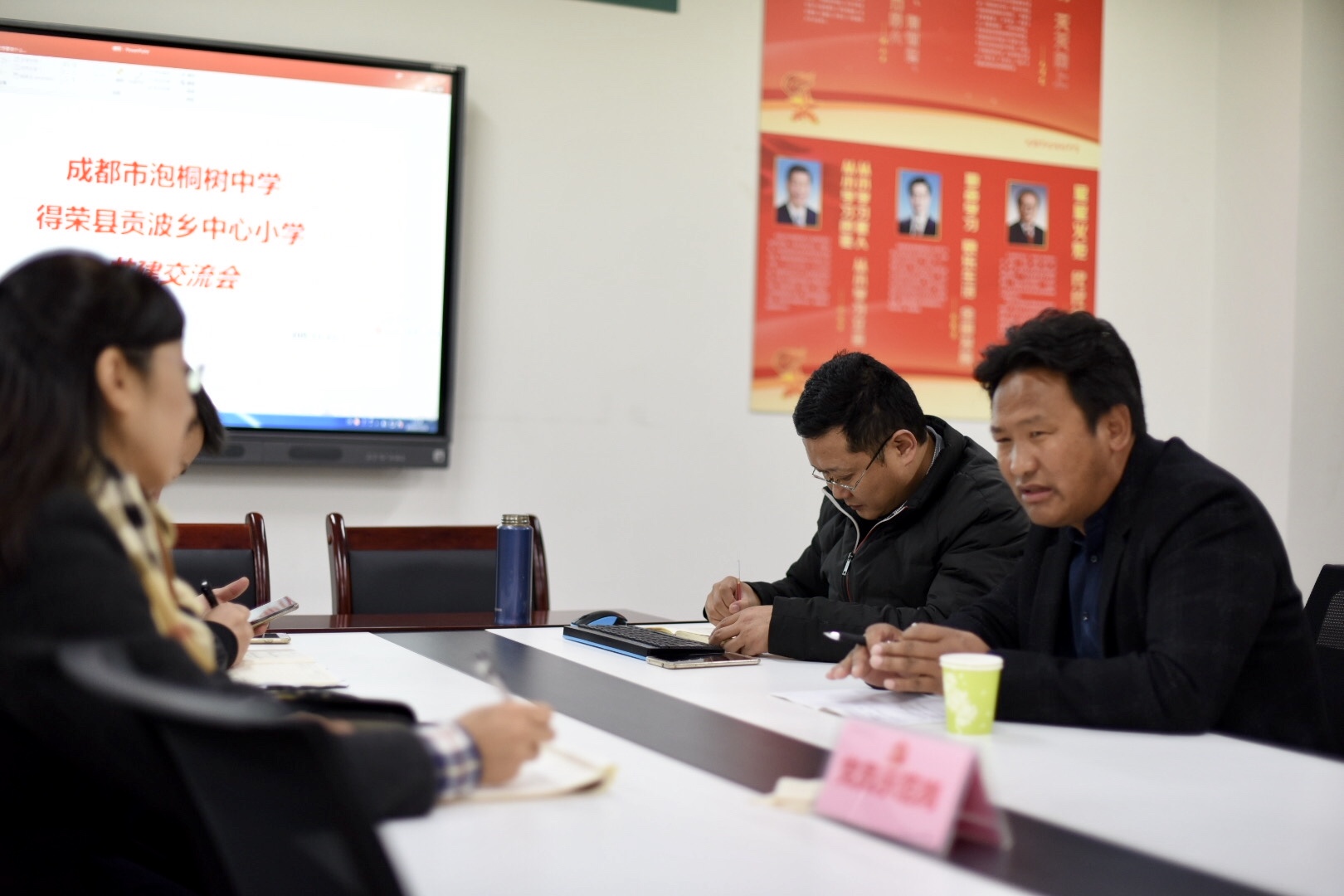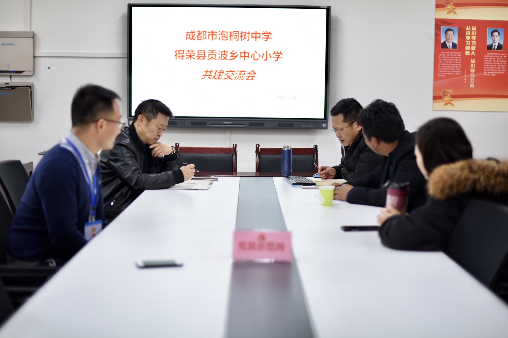 随后,我校杨超校长,欧燕校长,赵东书记,办公室王其明主任,成长联合会李霞霏主任,与小昂翁泽仁校长于会议室进行了进一步的交流。