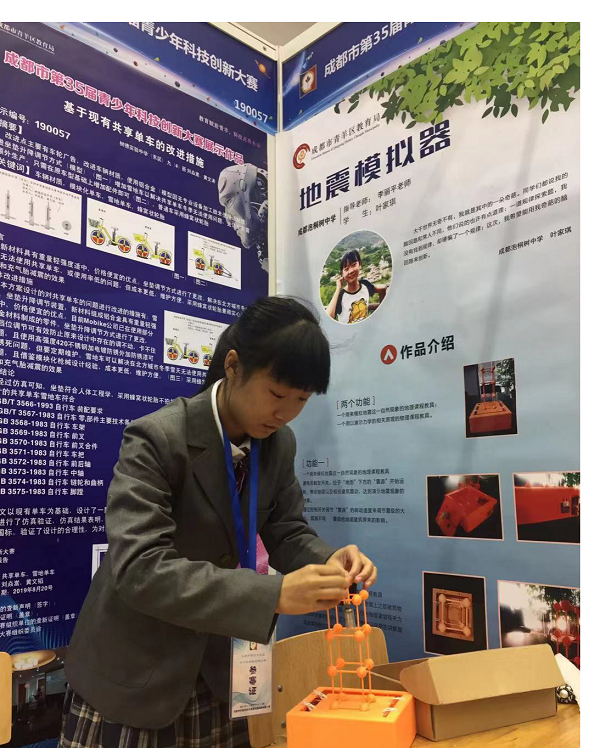科技点亮未来,创新改变生活。2019年11月28日,成都市第35届青少年科技创新大赛在成都市石室中学附属小学隆重举行,我校学生叶家琪代表作品《地震模拟器》入围决赛。经过现场作品介绍及紧张而激烈的答辩环节,叶家琪同学获得本次比赛的一等奖!