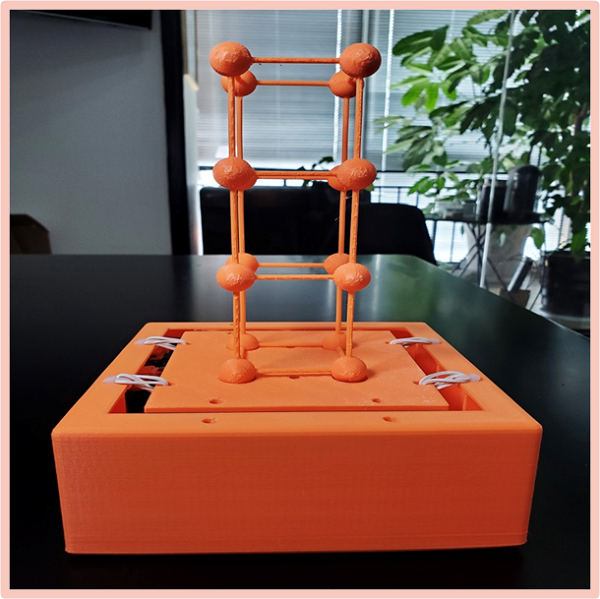 通电后触发开关,位于“地面”下方的“震源”开始运转,带动地面以及相应建筑震动,达到演示地震现象的效果。通过控制开关调节“震源”的转动速度来调节震级的大小,我们可以观测不同震级给地面建筑带来的影响,触碰一次是最弱震级,第二次较强,第三次最强,第四次停止。结构主体由3D打印完成,主要分为模拟“地壳”“地面”“建筑”三部分。其中“地壳”“地面”采用一体打印,建筑主体分两部分打印后组合而成,地面与建筑主体间采用橡皮筋连接,增加了其实验效果;震源部分,借助“电机+偏心模块”的组合方式予以实现!