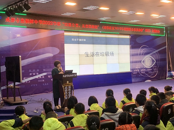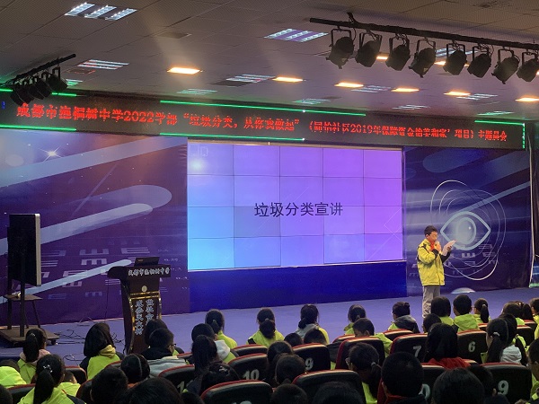 接下来的垃圾分类方法,同学们都听得格外认真,都迫切的想改变环境现状,在成都,垃圾大概分为四类,可回收垃圾,其他垃圾。厨余垃圾和有害垃圾。怎么分类呢?举个例子,一杯没有喝完的珍珠奶茶,奶茶的吸管和奶茶杯属于可回收垃圾,奶茶的珍珠属于其他垃圾,奶茶属于厨余垃圾……