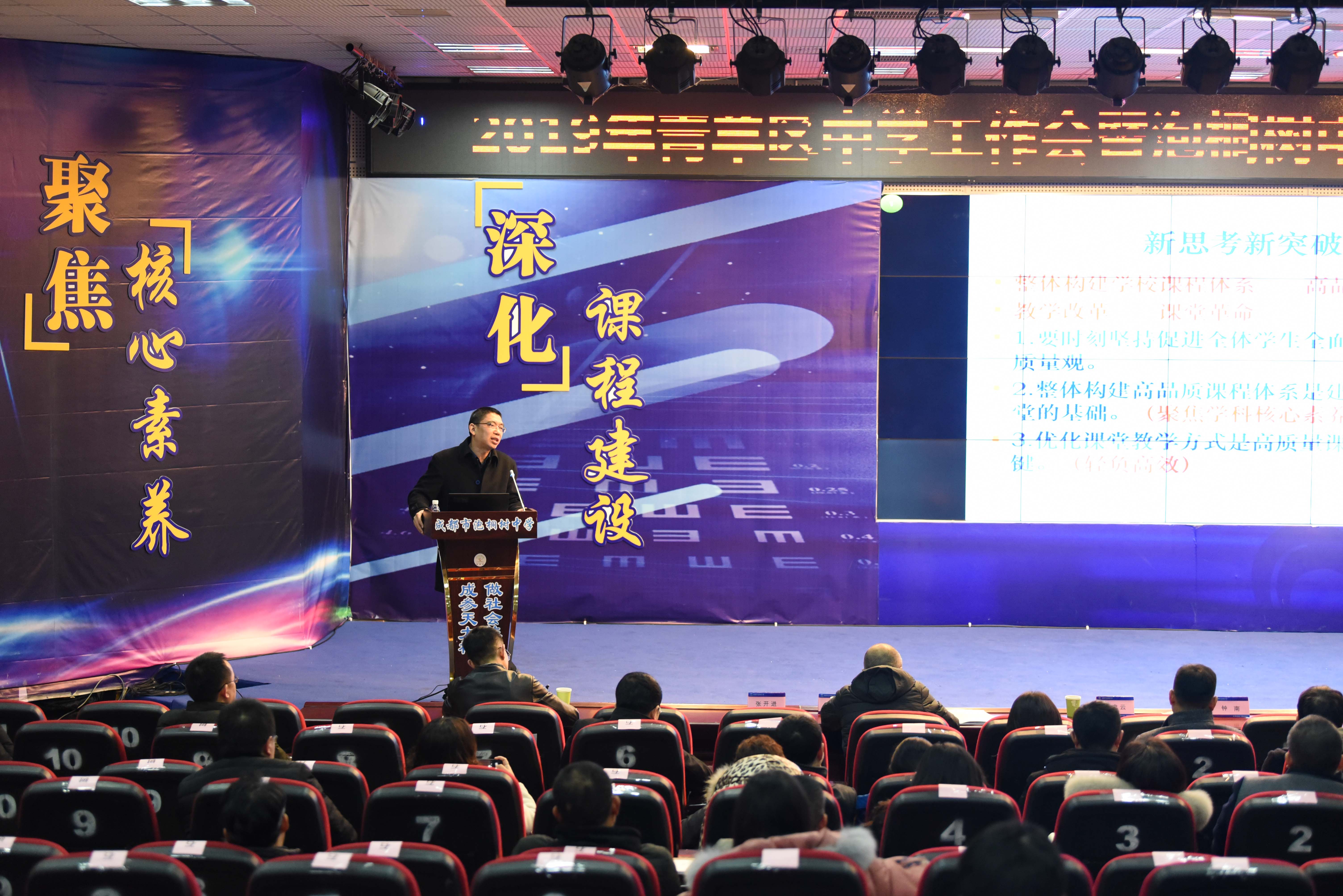 随后青羊区教育局杜忠云局长强调了课程优化、课业减负、和学生全面发展的重要性,其中包括各学校要在办学过程中继续思考课程规划、精简,以及重视学生的综合素质发展特别是身心健康,并宣布2018-2019学年度青羊区中学教育教学优秀集体和个人的表彰决定。