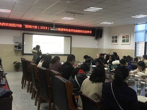 1月8日上午,寒冬挡不住学习的热情,由四川师范大学外院学科教学教研室主任梁茜女士带队,四川省“国培计划(2019)”初中英语学科名师近50人到校交流学习。
