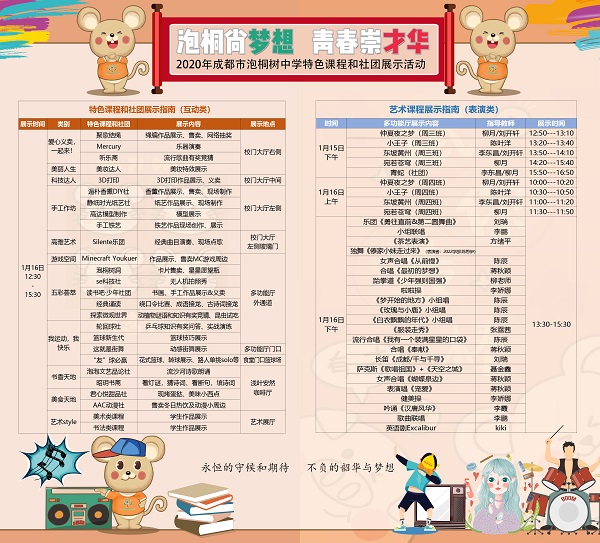 泡桐尚梦想 青春崇才华---2019-2020学年上期成都市泡桐树中学特色课程、社团、作品展示活动