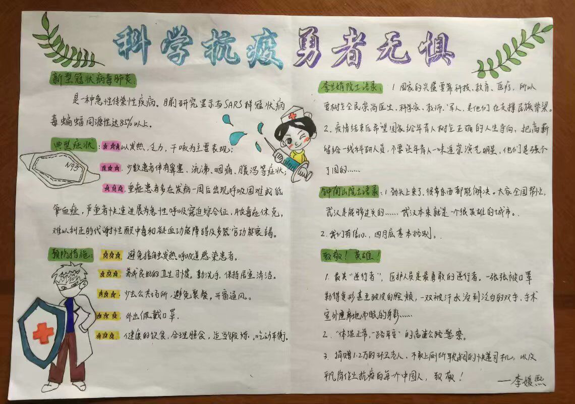 除了了解和学习关于传染病的相关知识,学会保护自己之外,学生们更接触到了一份难能可贵的品质——勇气,也展现出困难面前众志成城的家国情怀和责任感!