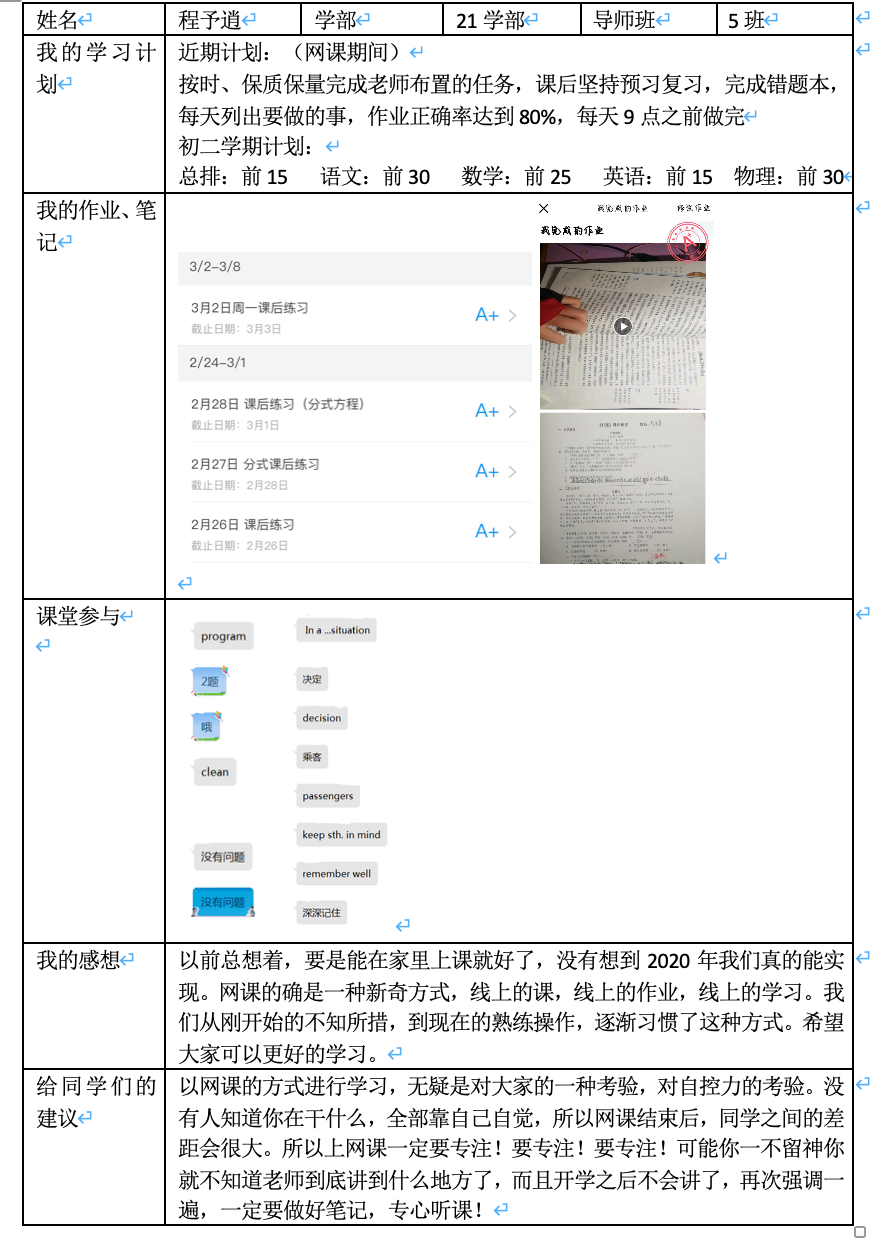 网课学习达人 | 2021学部 | 导师5班 程予逍