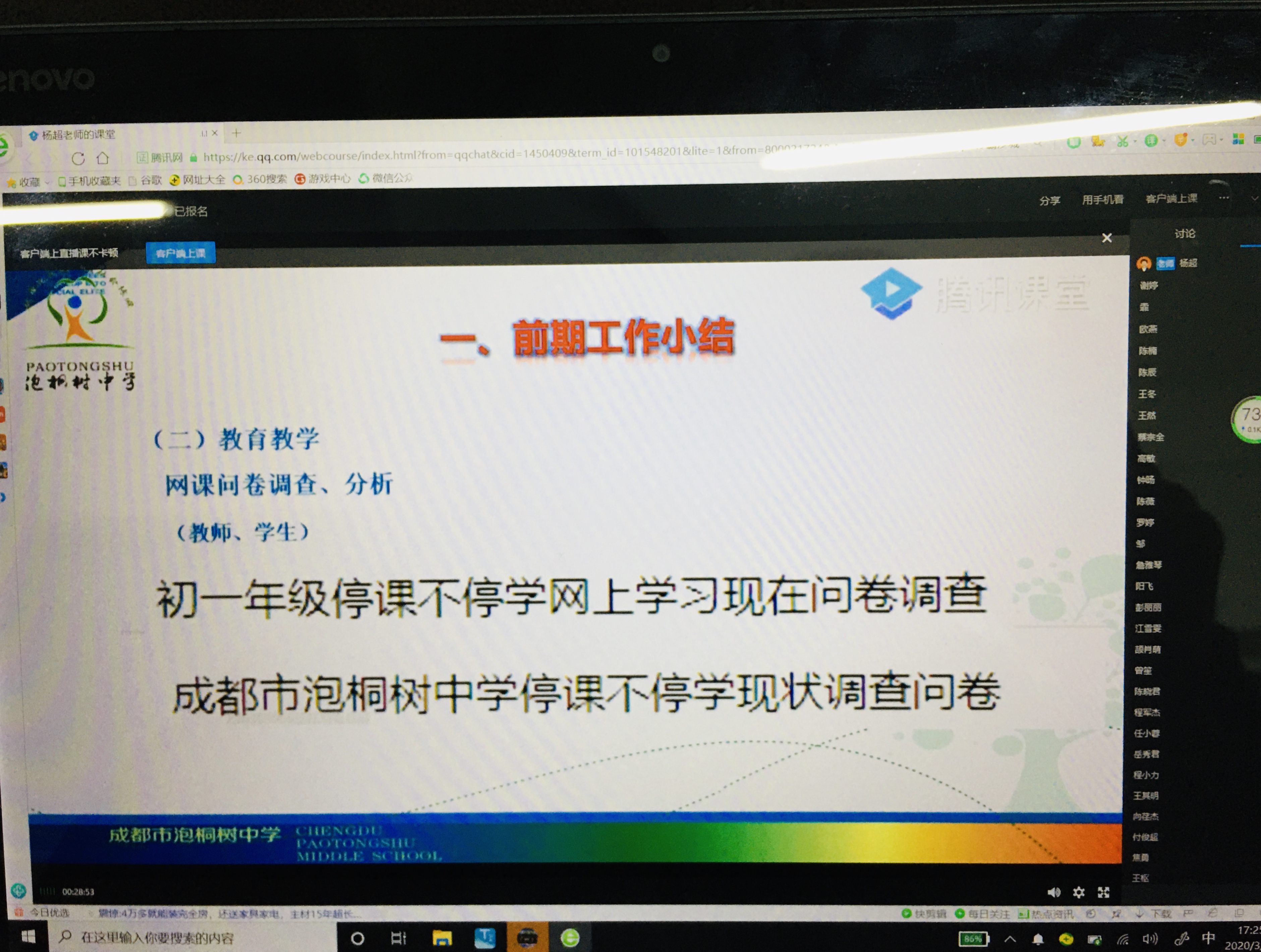 成都市泡桐树中学第一次线上全校教职工大会
