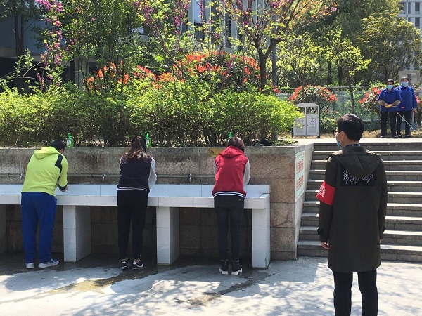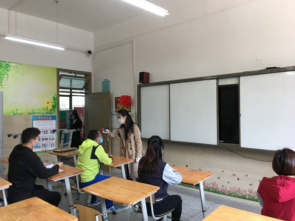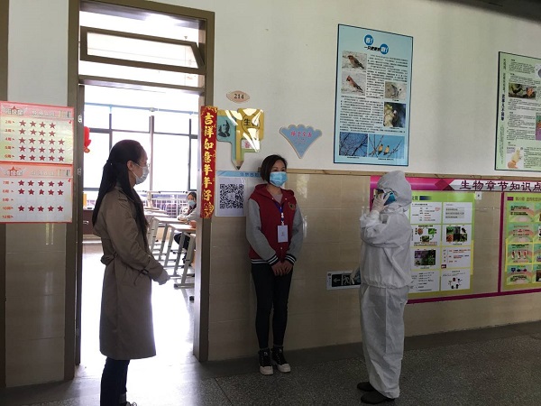 我校执行双晨检制度,第一道防线设置在自家大门,所有返校人员在出家门前测量体温,体温正常方可出门。体温异常者按照学校请假规定,完善请假手续,说明异常情况。