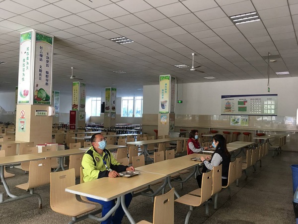 学生错峰、错时就餐,取餐后到就餐区错位就坐就餐,最大程度减少人员聚集
