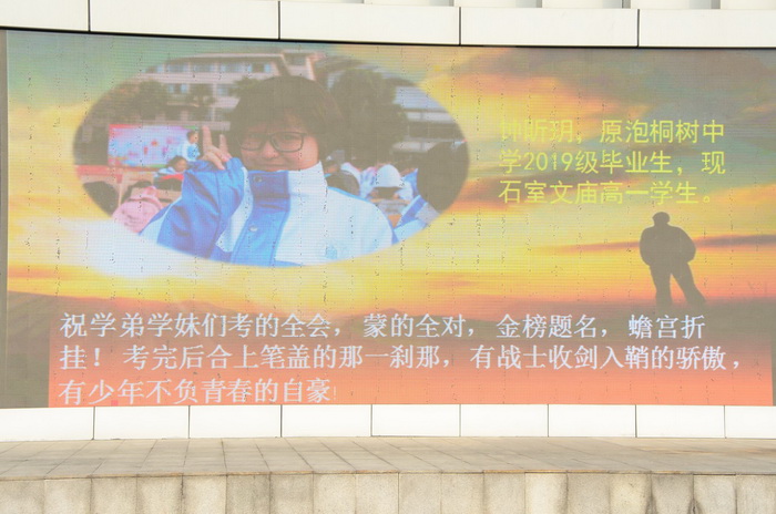 2019学部的学长钟昕玥也寄来深深祝愿,希望2020学部的学子金榜题名,圆梦中考。