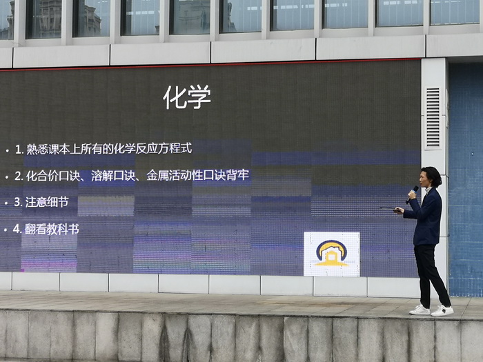 蒋墨洋学长分享了自己中考各科的学习经验,也谈及自己目前的学习成就离不开努力。冉浩均学长通过视频向学弟学妹们传递中考释放压力的方法——奋斗、抓易错点。