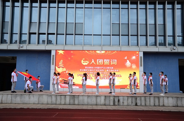 接着在这个特殊的日子里,2021学部的新团员进行庄严的入团仪式。赵东书记、付俊超团支部书记为新团员颁发团员证书和结业证书。
