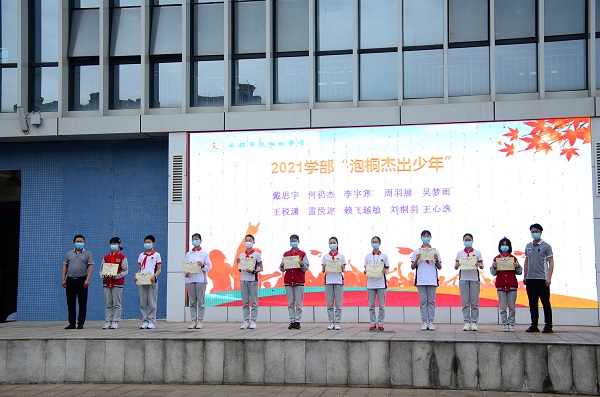 接下来颁发2019学年度“泡桐杰出少年”“泡桐优秀少年”奖状。