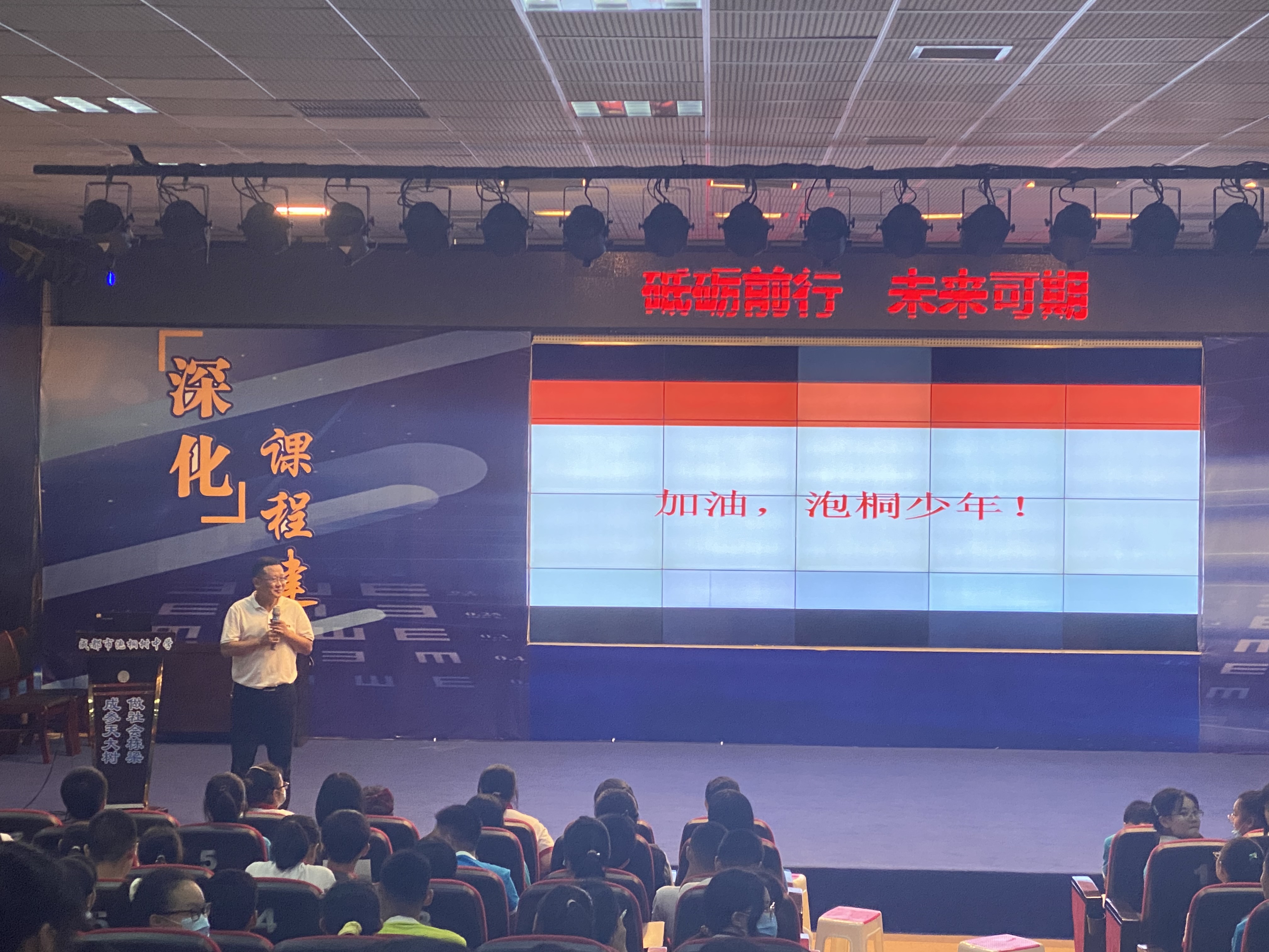 最后,动员大会以杨超校长的总结结尾,杨校长提到,今年已经是泡桐树中学建校的第7年,几年来,泡桐树中学向四七九等名校输送了许多优秀的毕业生,也有很多毕业生在艺术体育方面大展才华。希望2021级的同学们也能从泡中带着优异的成绩毕业,向希望的种子一样播种到全国各地,成参天大树,做社会栋梁。