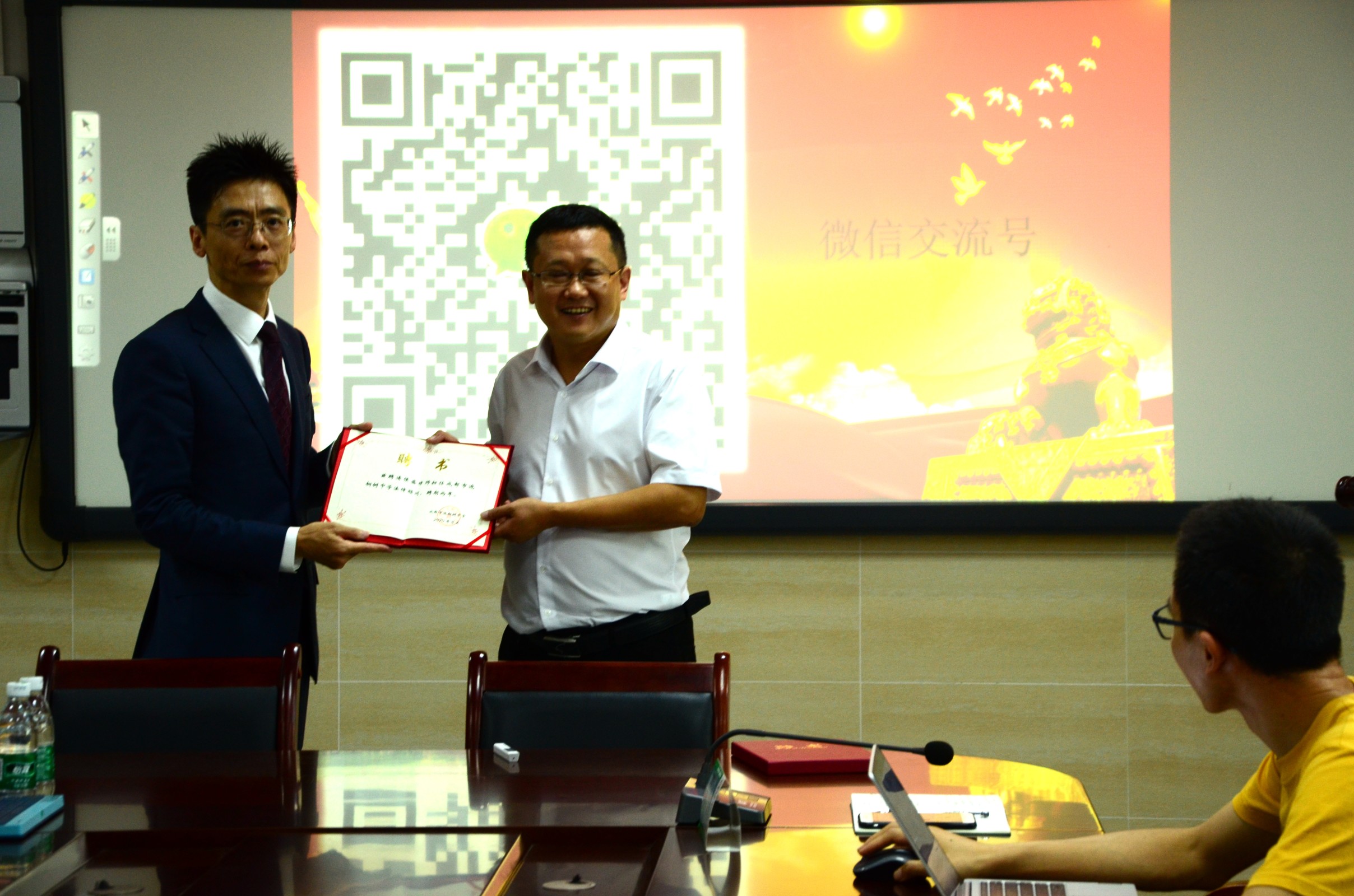 侯盛律师还被特聘为成都市泡桐树中学法律顾问,讲座后,杨超校长为侯盛律师颁发了聘书。