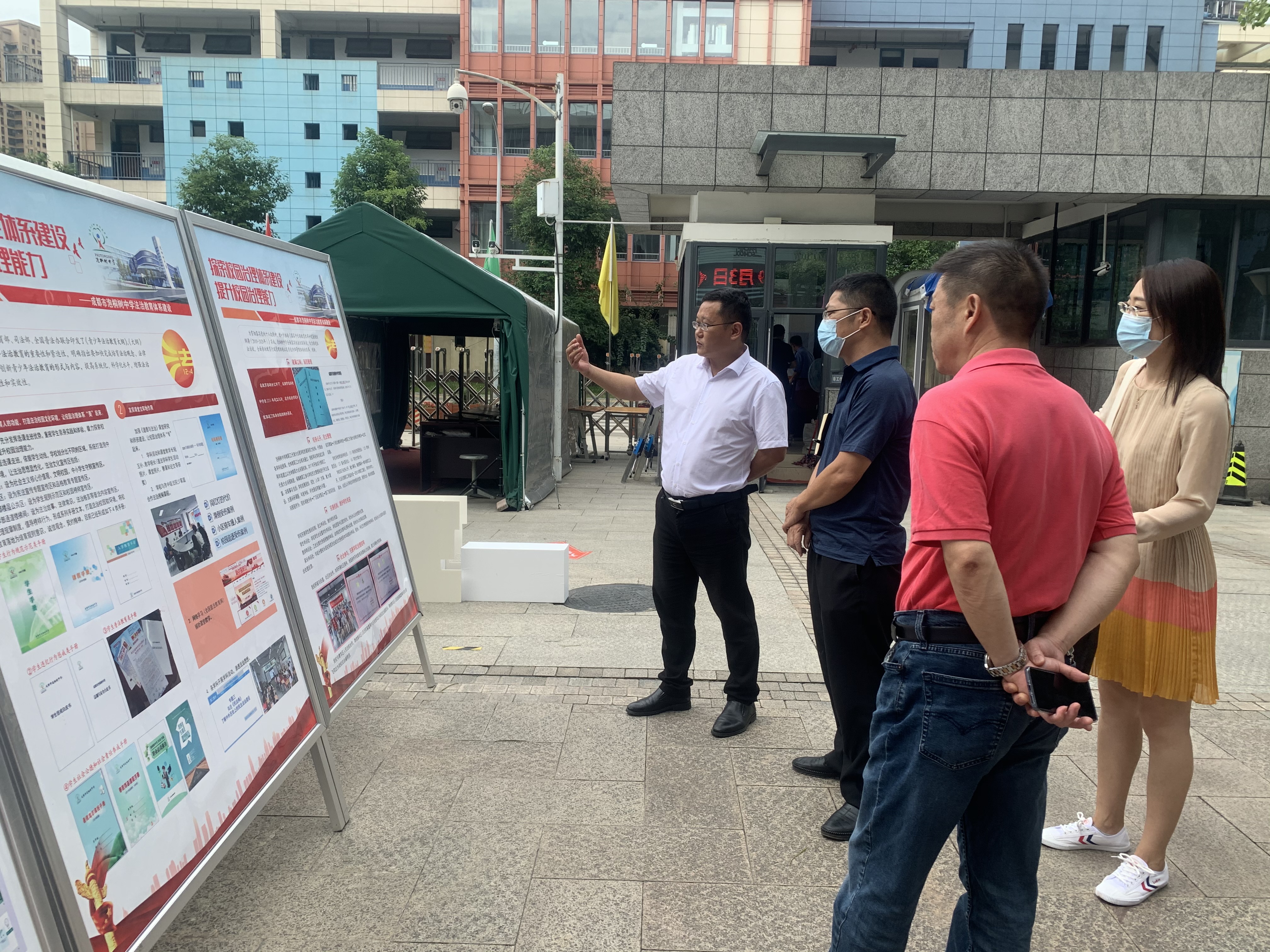 随后杨超校长和赵东书记同领导们一同参观了校园,并向领导们介绍了校园文化布置中,法制教育板块的设置。