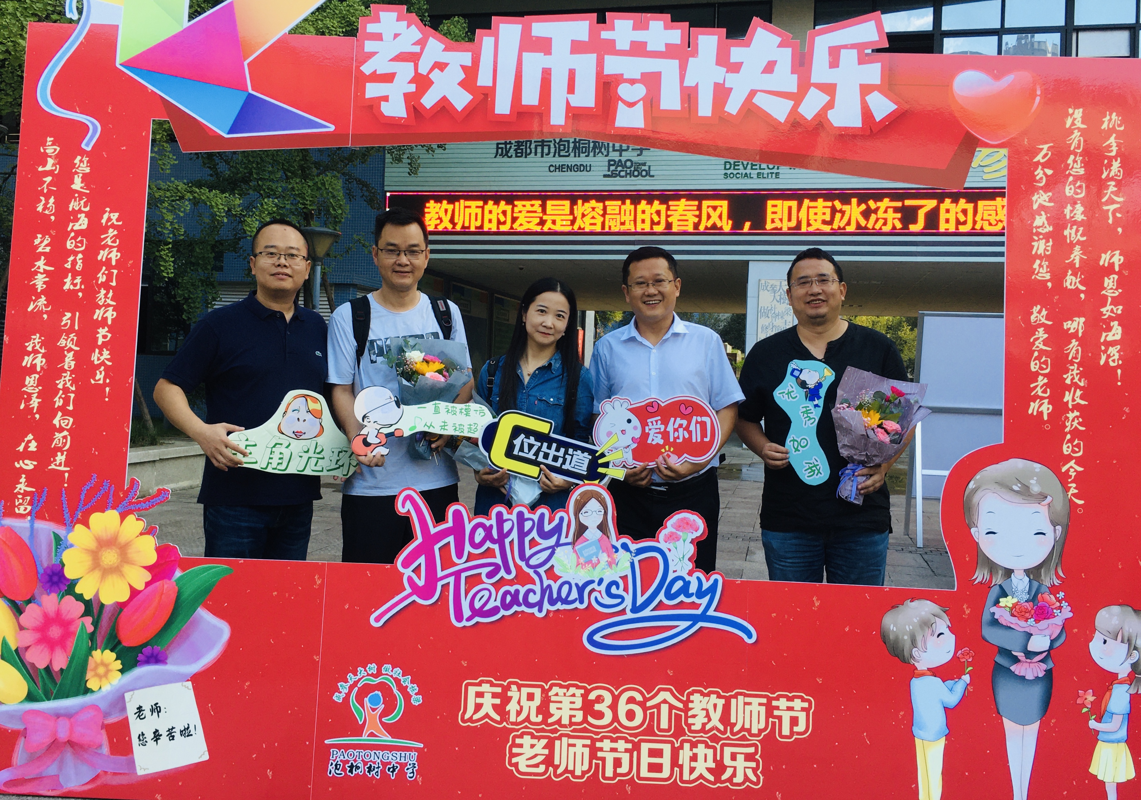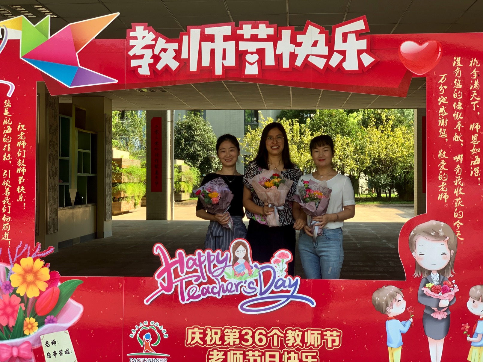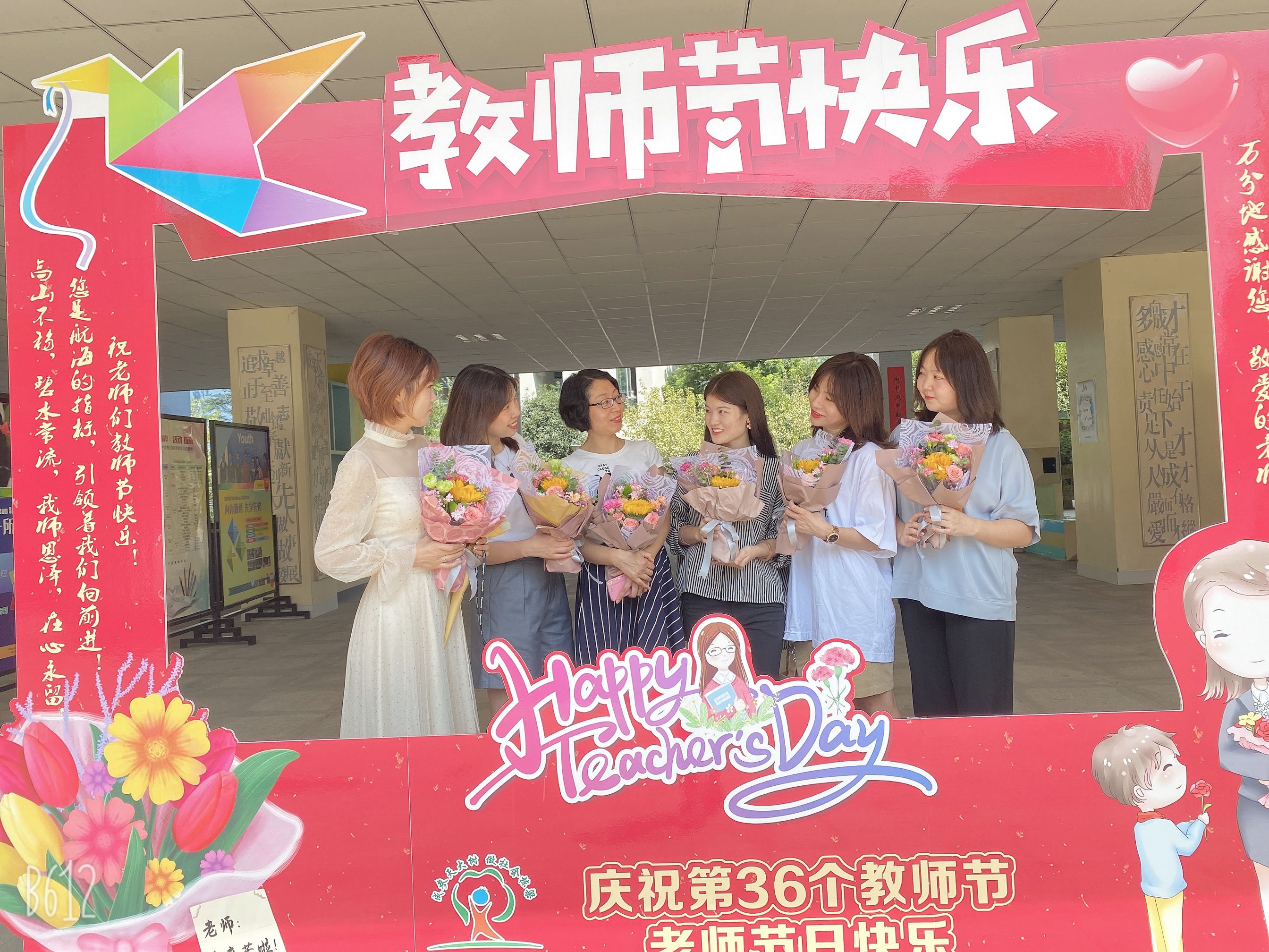 鲜花映衬老师们的笑颜,愿每位泡中老师美好常伴。