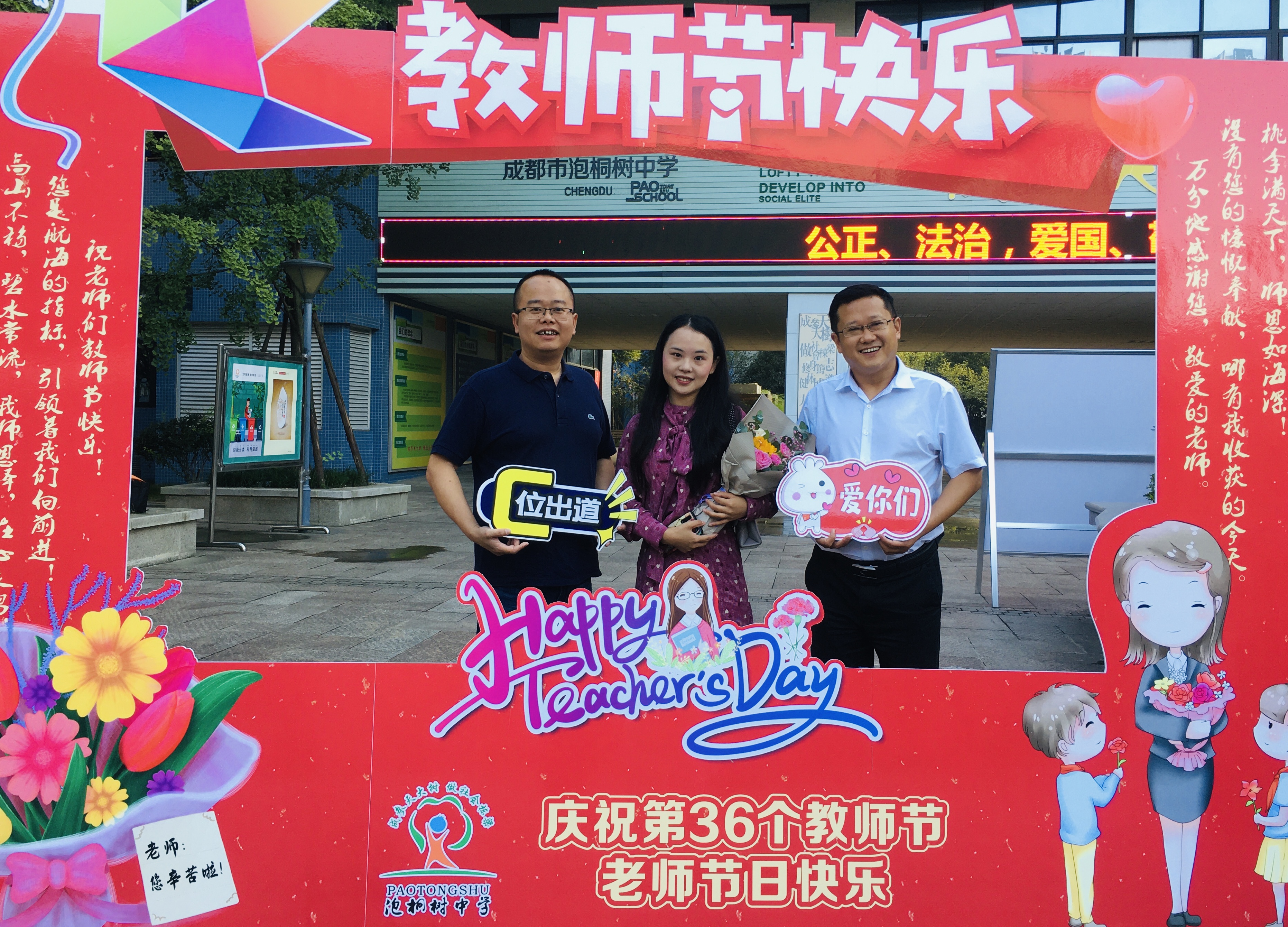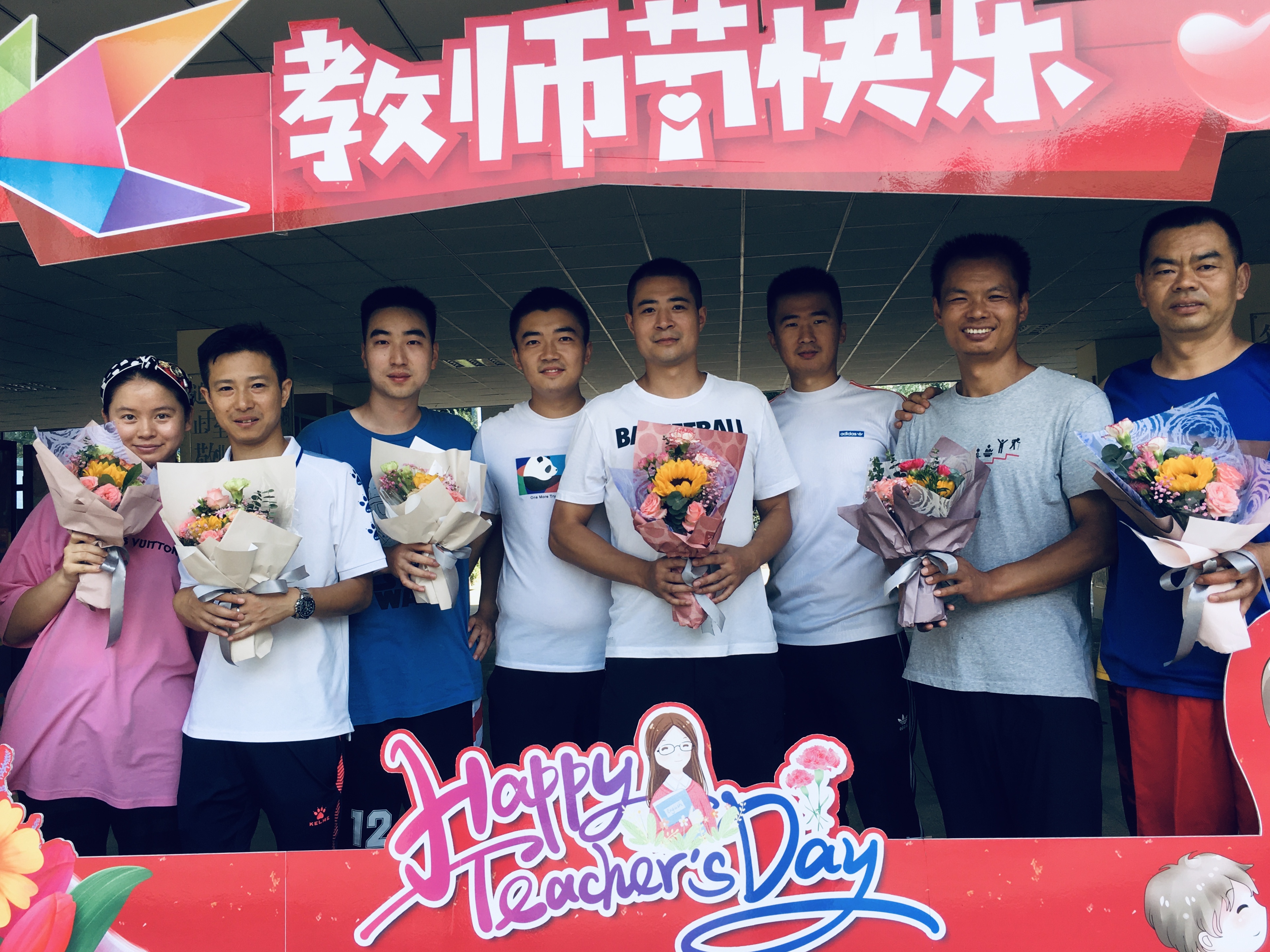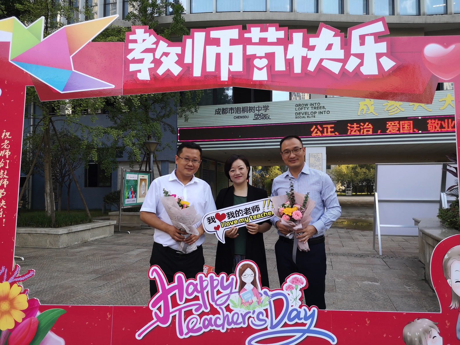 鲜花映衬老师们的笑颜,愿每位泡中老师美好常伴。
