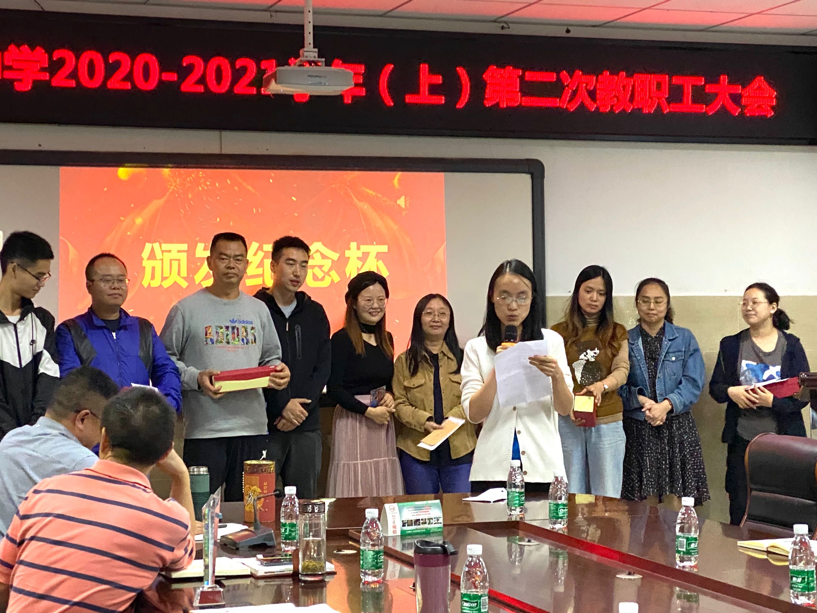 之后,青年教师们亲手将做好的奖杯颁给自己的师父,师徒之间交换书信,并现场随机抽取了张勇老师的信与彭智娟老师的进行朗读。