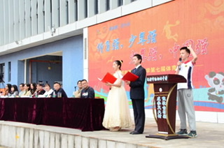 赵东书记宣布成都市泡桐树中学第七届体育季正式开幕。