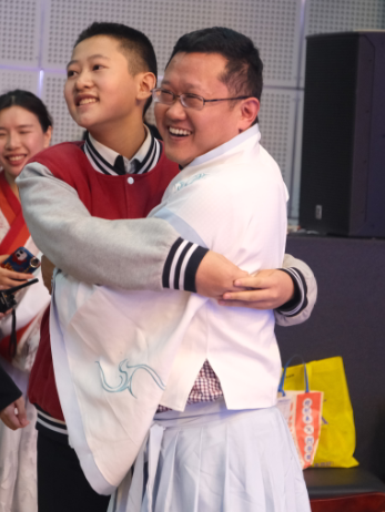 晚会至半,主持人邀请了在场的老师和家长为我们抽取了本场的幸运观众,被抽到的同学背诵指定古诗,以此来赢取神秘大奖!