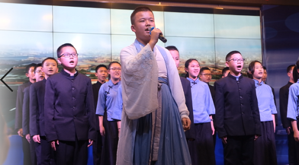 千年一瞬,似流水轻烟;万千故事,落于日月山川。每个今日都会成为昨天,于是,我们往往寄希望于明天。可,百年明日能几何?请君听我明日歌。在4位同学的领唱下,现场全体同学起立,合唱《明日歌》。