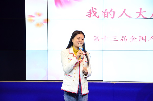 这次徐萍姐姐的分享让我们走进了“两会”,更加深入了解到了人大代表的艰辛与不易。人大代表是人民的代表,两会是人民的会议,一个人大代表,背负的是责任,我们也应该铭记两会精神,将24字核心价值观牢记于心中,努力读书,为祖国的事业奉献出自己的一份绵薄之力,争做社会的接班人!